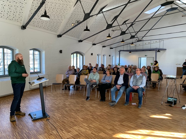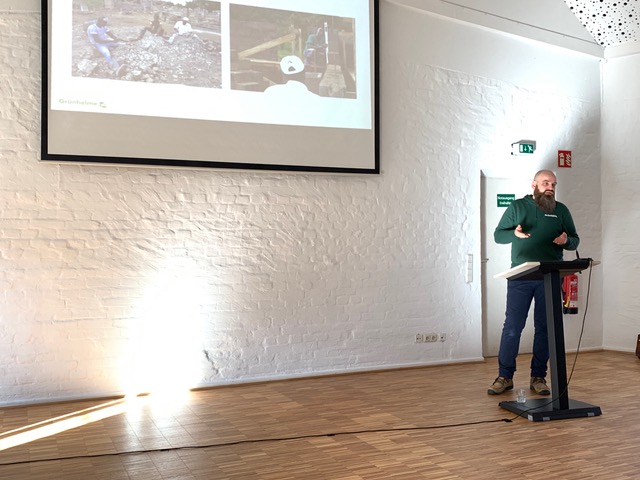 Martin Mikat erzählte den Besuchern von seiner Tätigkeit als Grünhelm und allem, was dazugehört. So erfuhren die Zuhörer, dass er während seiner Gesellenwanderung zu den Grünhelmen fand, die 2003 von Rupert Neudeck gegründet wurden. Wichtig sei den Grünhelmen, ziemlich sicher gehen zu können, dass die Projekte auch nach dem Bau erhalten bleiben und ihren Ursprungszweck behalten. Am Beispiel von Sierra Leone berichtete er, dass sie in unwegsamen Gebieten unterwegs seien, wo so ansonsten niemand hinkomme.